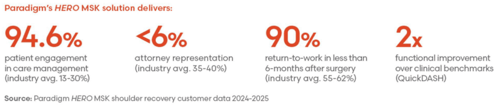 - Cost certainty through risk transfer: By assuming financial risk through bundled pricing, Paradigm delivers cost certainty while driving better coordination, faster functional recovery, and reduced risk exposure.